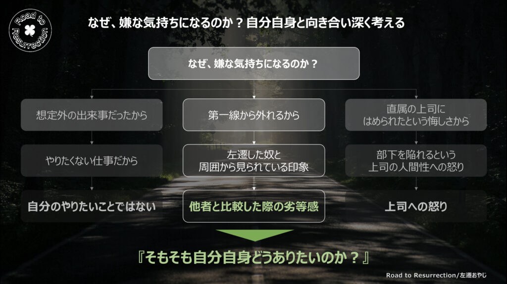 なぜそのような気持ちになるのか徹底的に自分自身と向き合い、深く深く内観してみること。