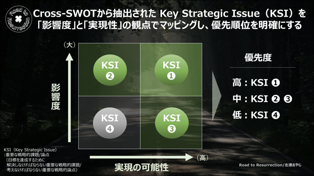 Cross SWOT分析で、Key Strategic Issue(KSI)を導き出されたら、