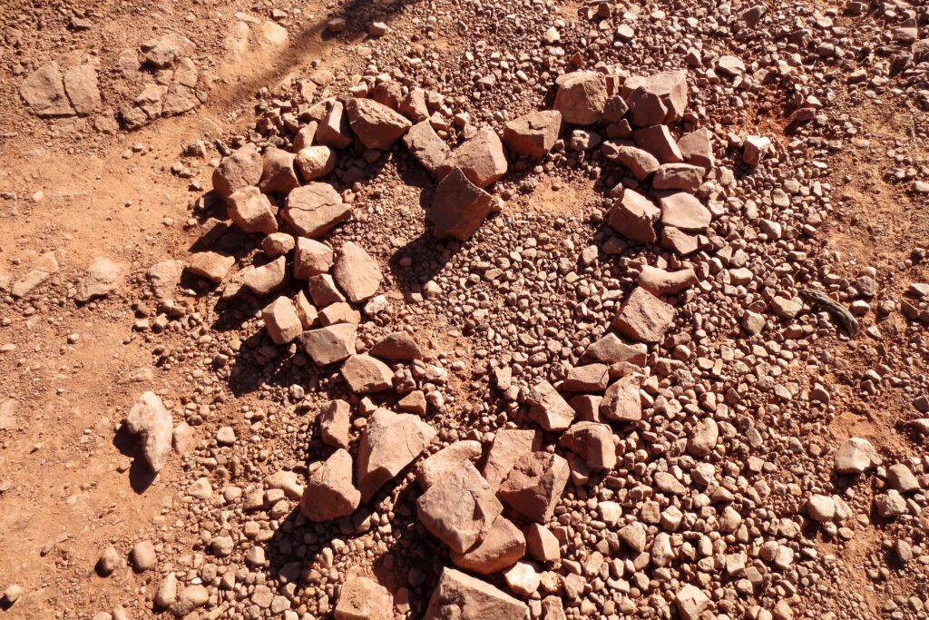 しばらく進むと、ハート型に置かれた石を発見。。。