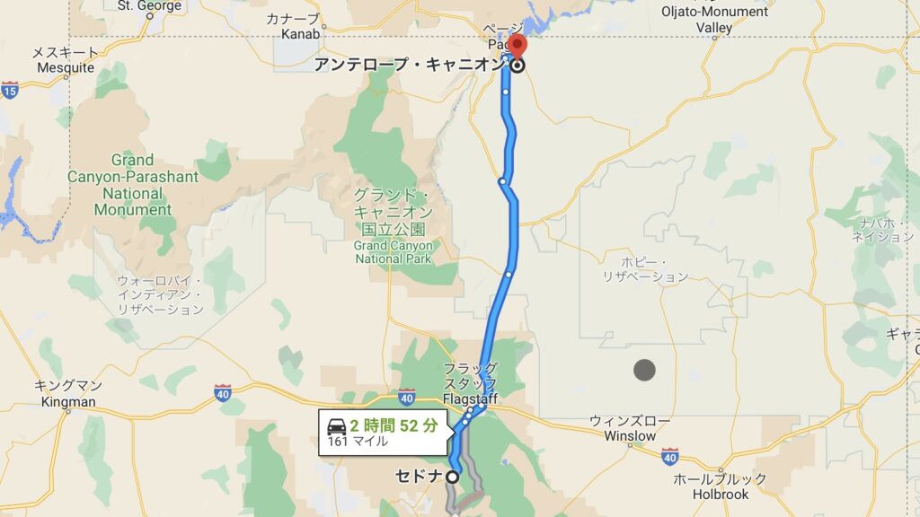 セドナからアンテロープキャニオンへの道は、こんな感じ。。。