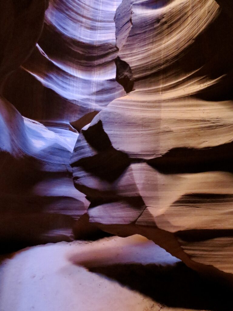 アンテロープキャニオンは、何百万年にもおよぶ地層を形成していて、大雨による鉄砲水や風の作用など長年の侵食により現在の姿になったらしい。